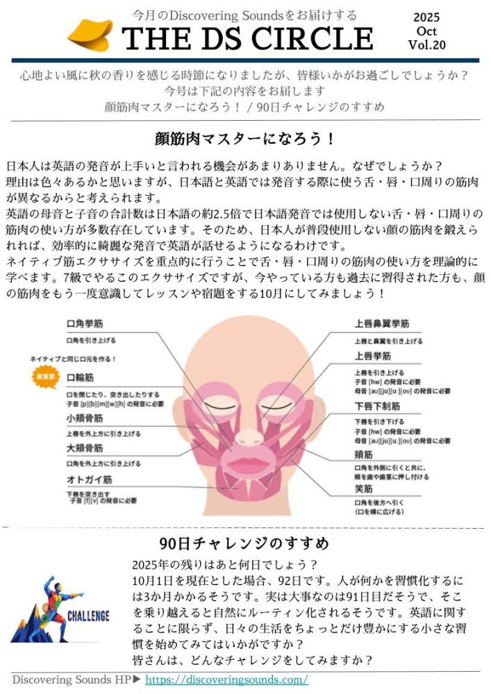 英語の発音に必要な顔の筋肉を紹介しています。