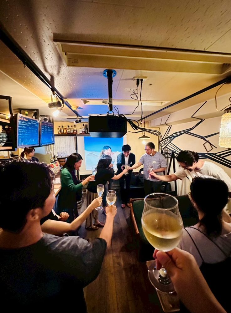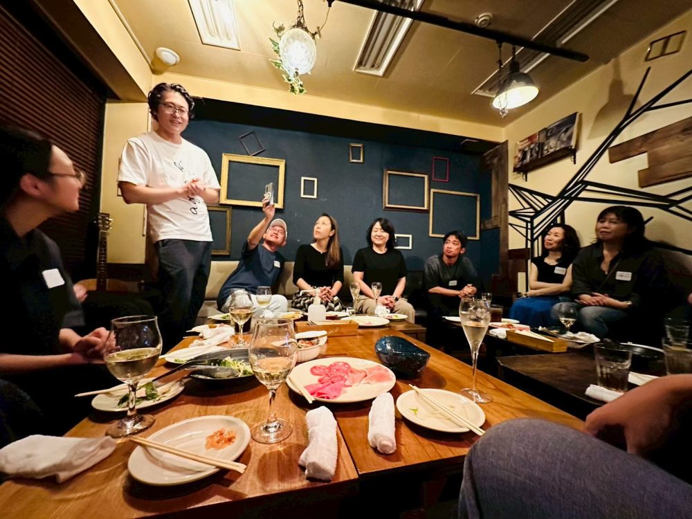会場は、渋谷の素敵なイタリアンレストランを貸し切りで。 撮影監督さん、出演者の皆さん、そしてDiscovering Soundsの生徒の皆さんたちを含めた総勢15名にお集まりいただき、大盛り上がりの一夜となりました。